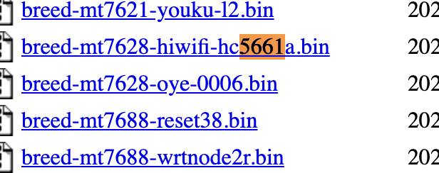 STEP 1: 去官网下固件 https://breed.hackpascal.net/ 注意:极路由1S-HC5661A的主芯片是mt7628而非mt7620,千万别选错固件了,否则变砖后果自负。可以看到如下图搜索到的5661a的固件